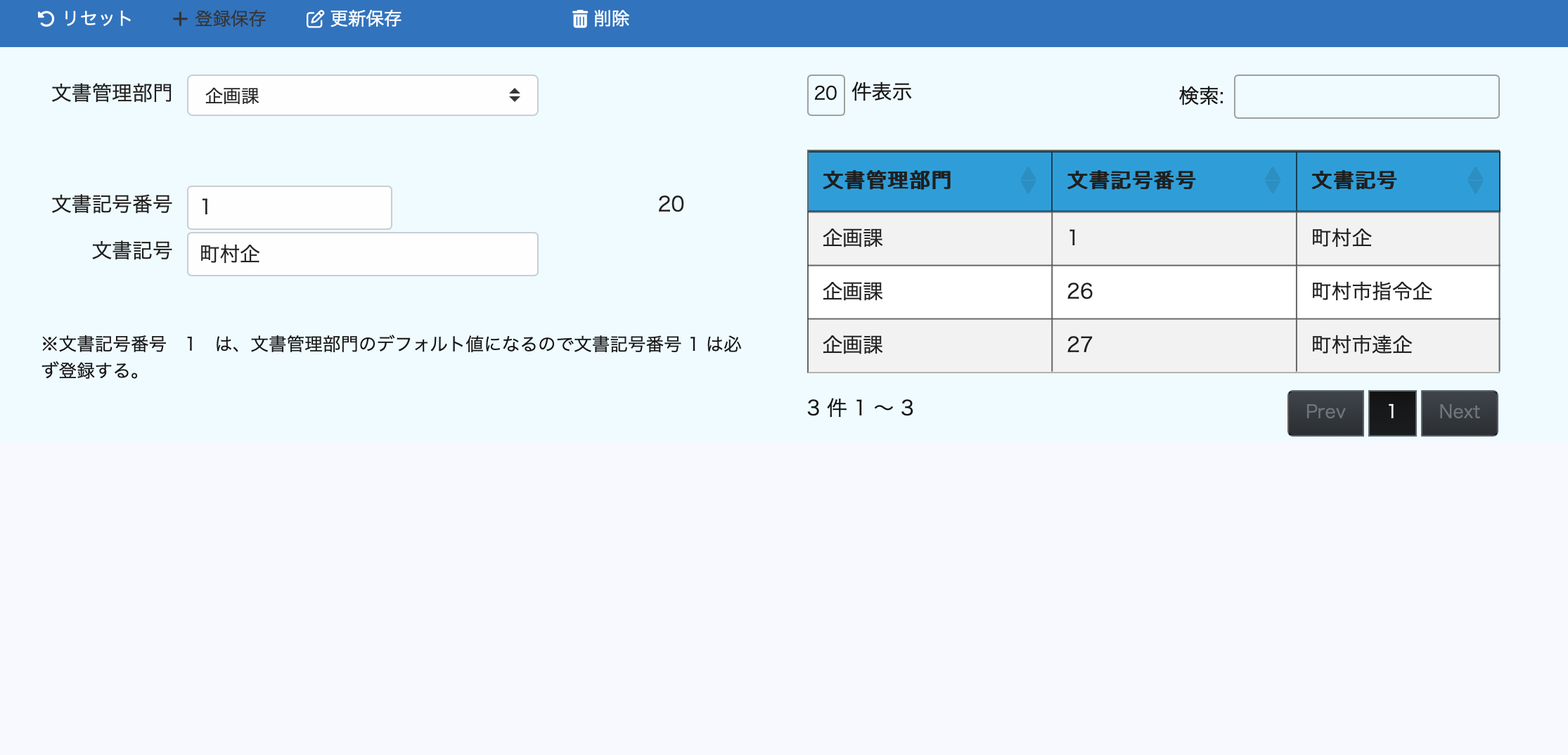 初期設定のままで特に変更の必要はありませんが、課を新設した時は、文書管理規程の通り設定します。