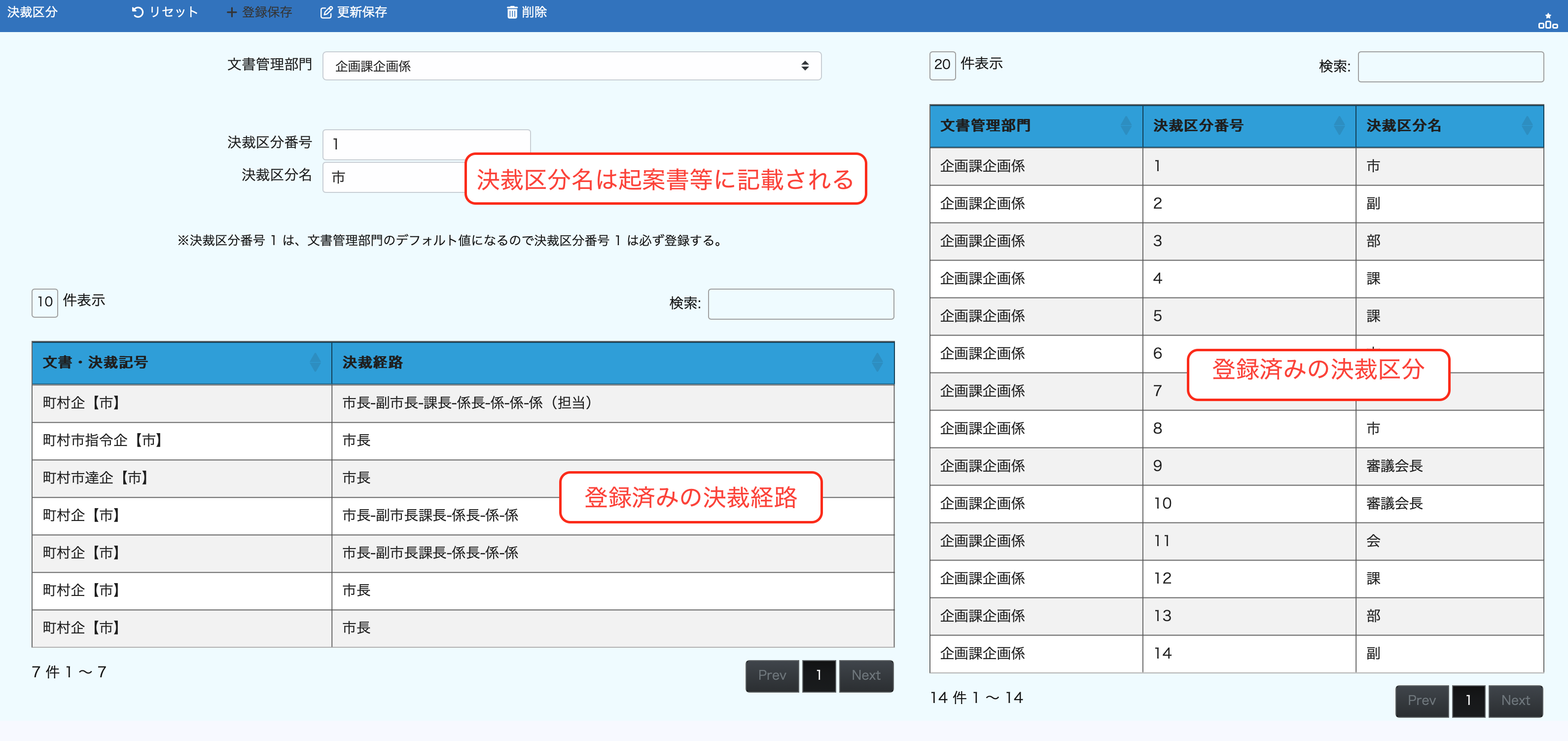 決裁区分名は、文書管理規定等で設定された文字列を基本としますが、必要に応じて自由に設定することができます。
