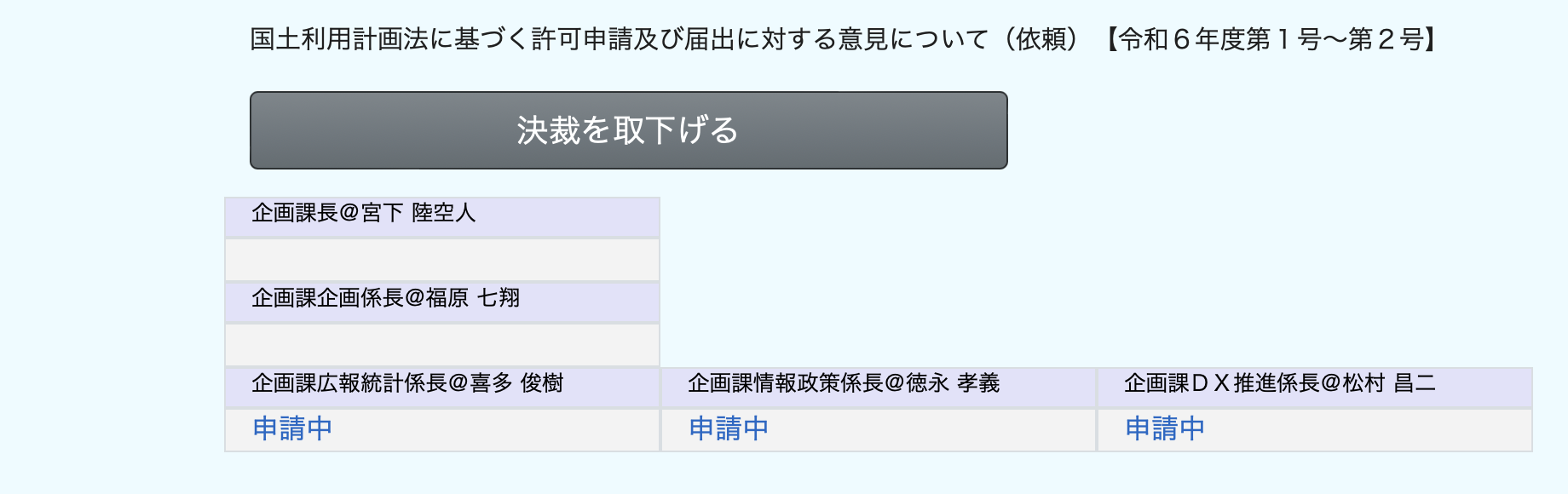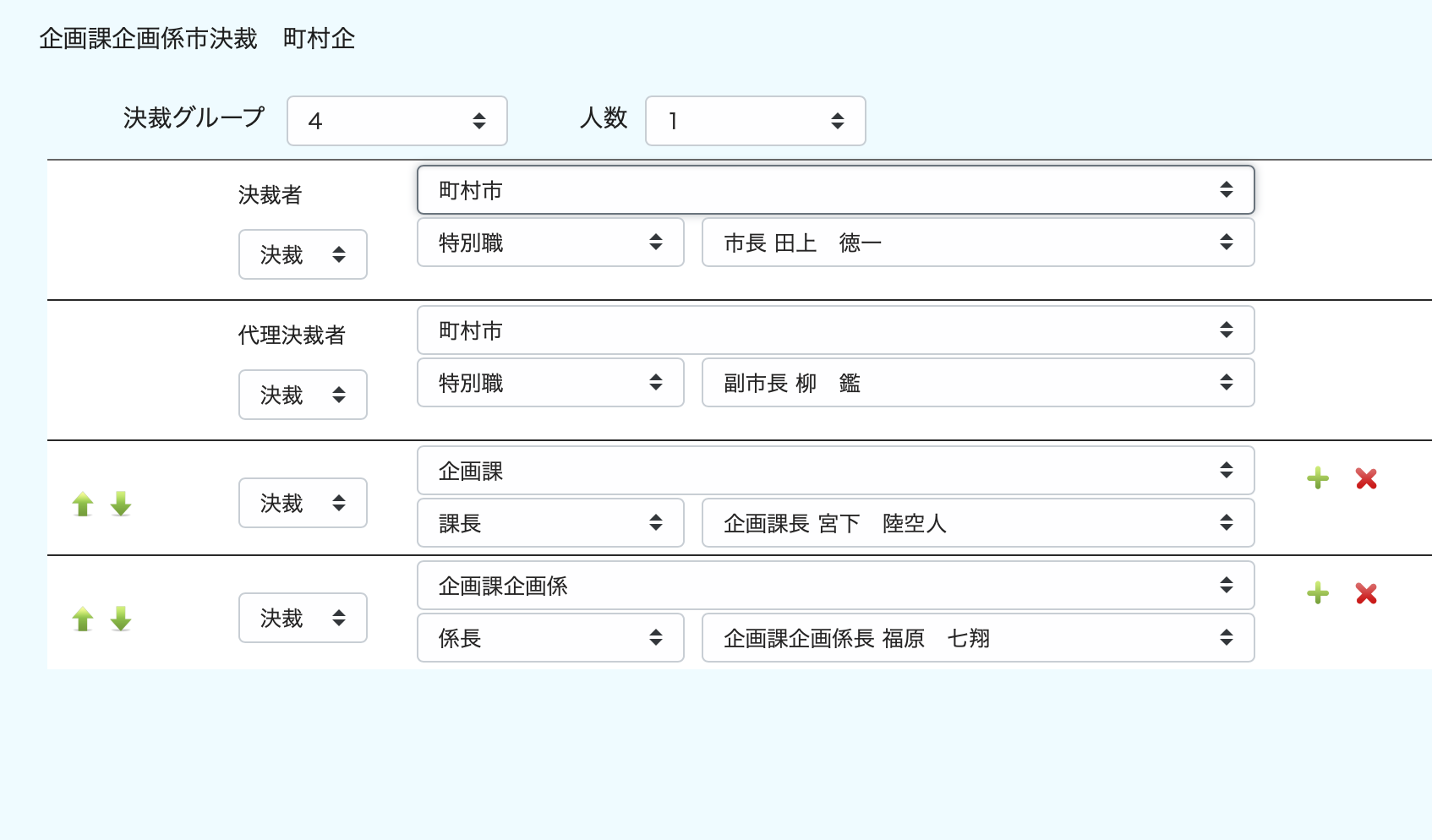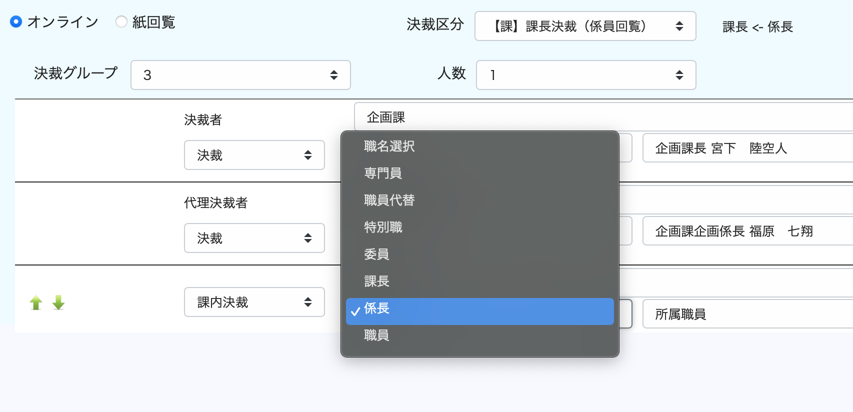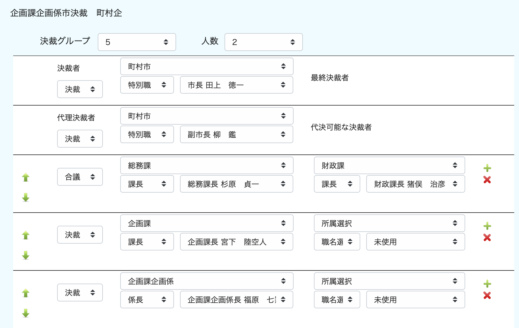 下図の第3グループは2人(総務課長・財政課長)が合議に設定されている。