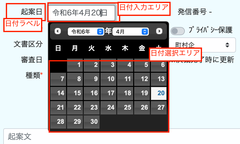 日付カレンダーは、ほとんどの日付入力で採用しています。