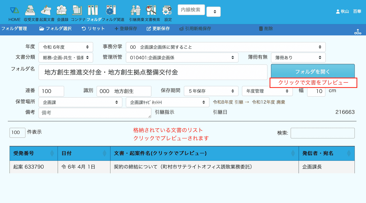 アプリの起動直後に「簿冊・フォルダ選択画面」が表示されます。