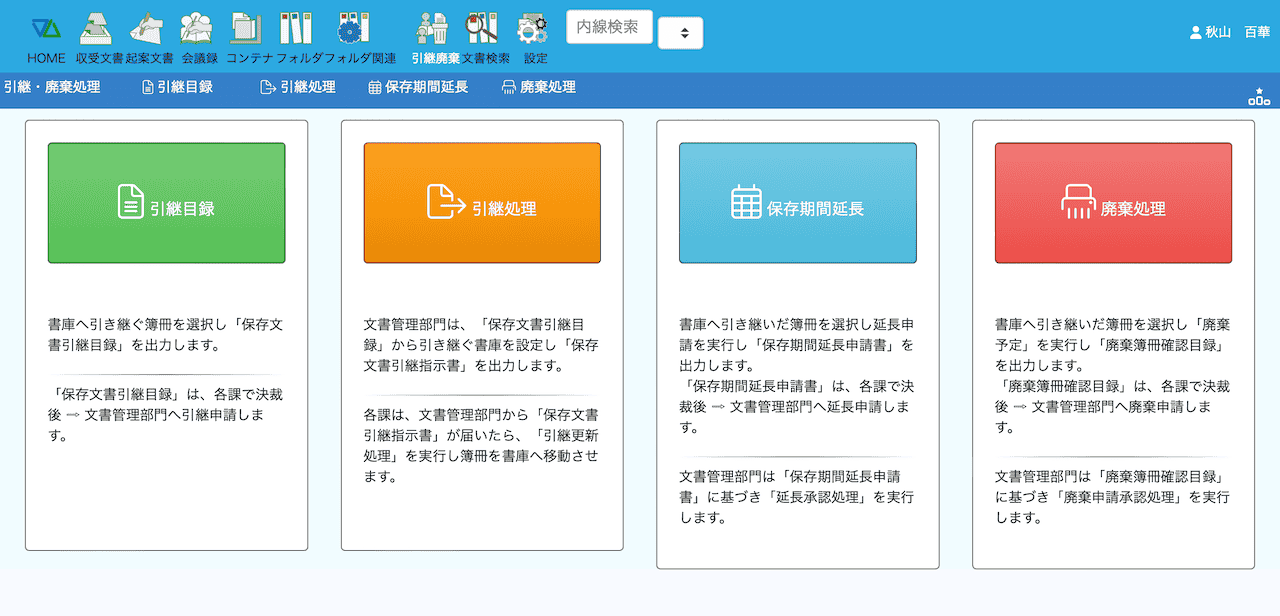 R06年04月に、引継処理を実施し文書管理部門に引き継ぎます。