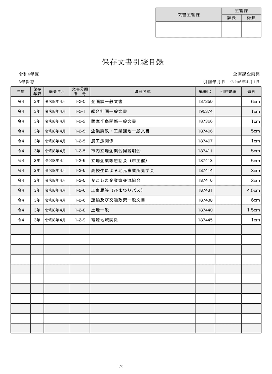 引継目録は、PDFで保存し文書管理部門へ申請します。