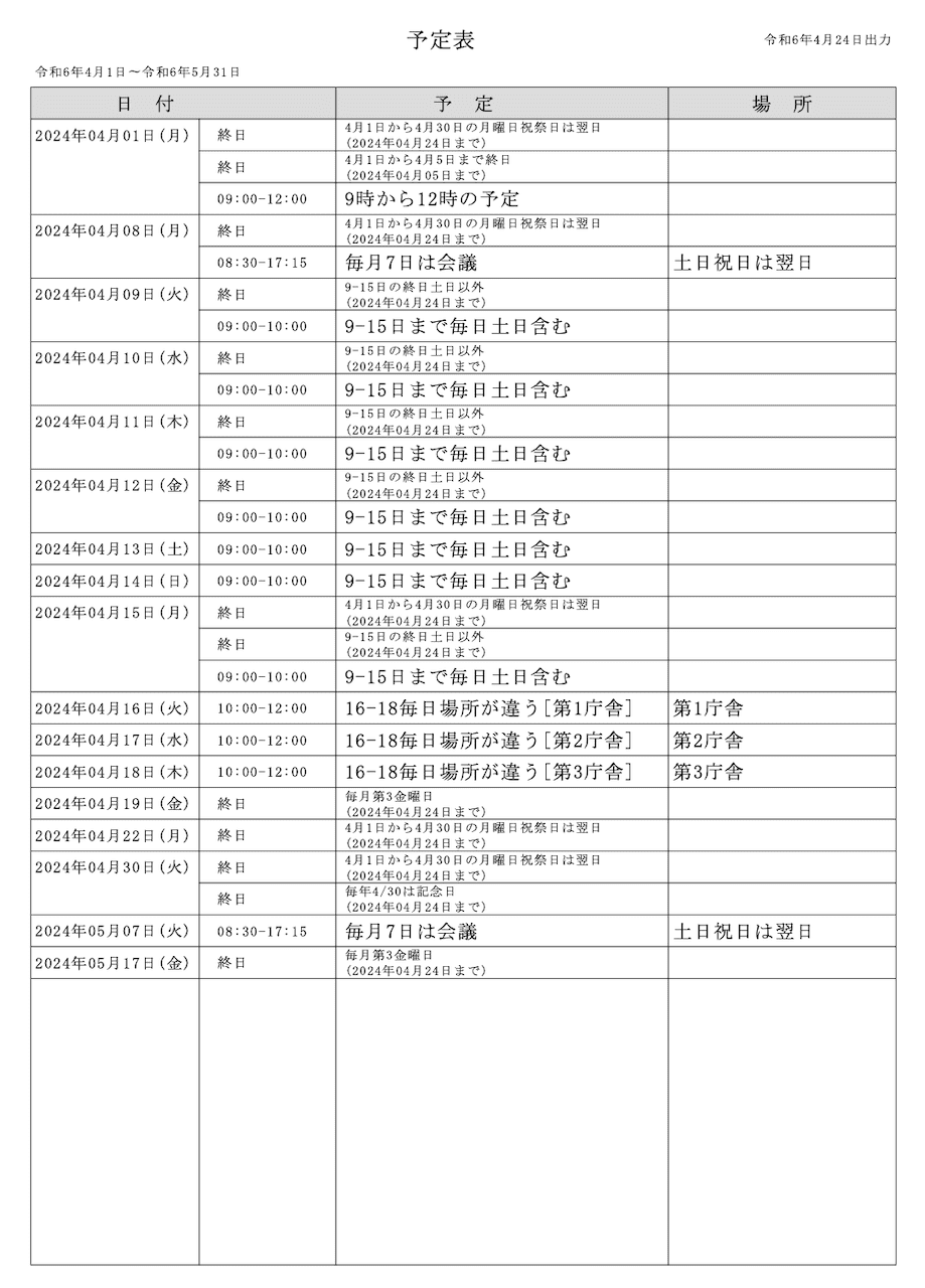 人事異動等の事務引き継ぎ等で利用できるスケジュールリストを作成します。