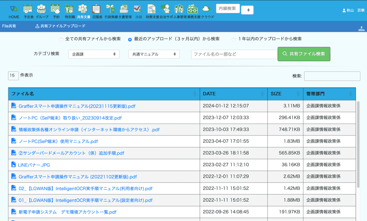共有ファイルは、様式やマニュアルなどを保管して共有します。