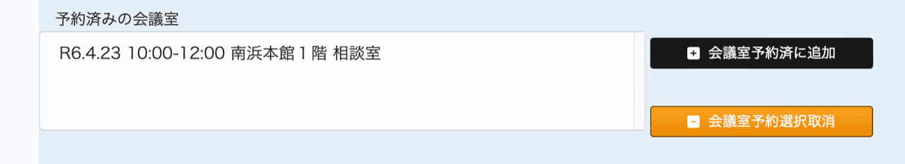 ④ 予約を確定させます。クリックすると右の図のようになります。会議室をクリックして取り消すことができます。